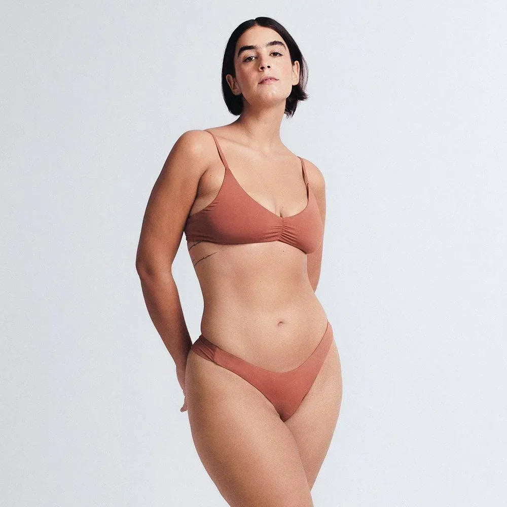 A Timeless Rise Undie é a parte de baixo no modelo asa delta, com recortes mais acentuados, desenha a silhueta e valoriza o corpo. Tecido ZEAMADE™️ duplo, forro e elasticidade que não aperta o corpo e em cores solares que valorizam diferentes tons de pele.