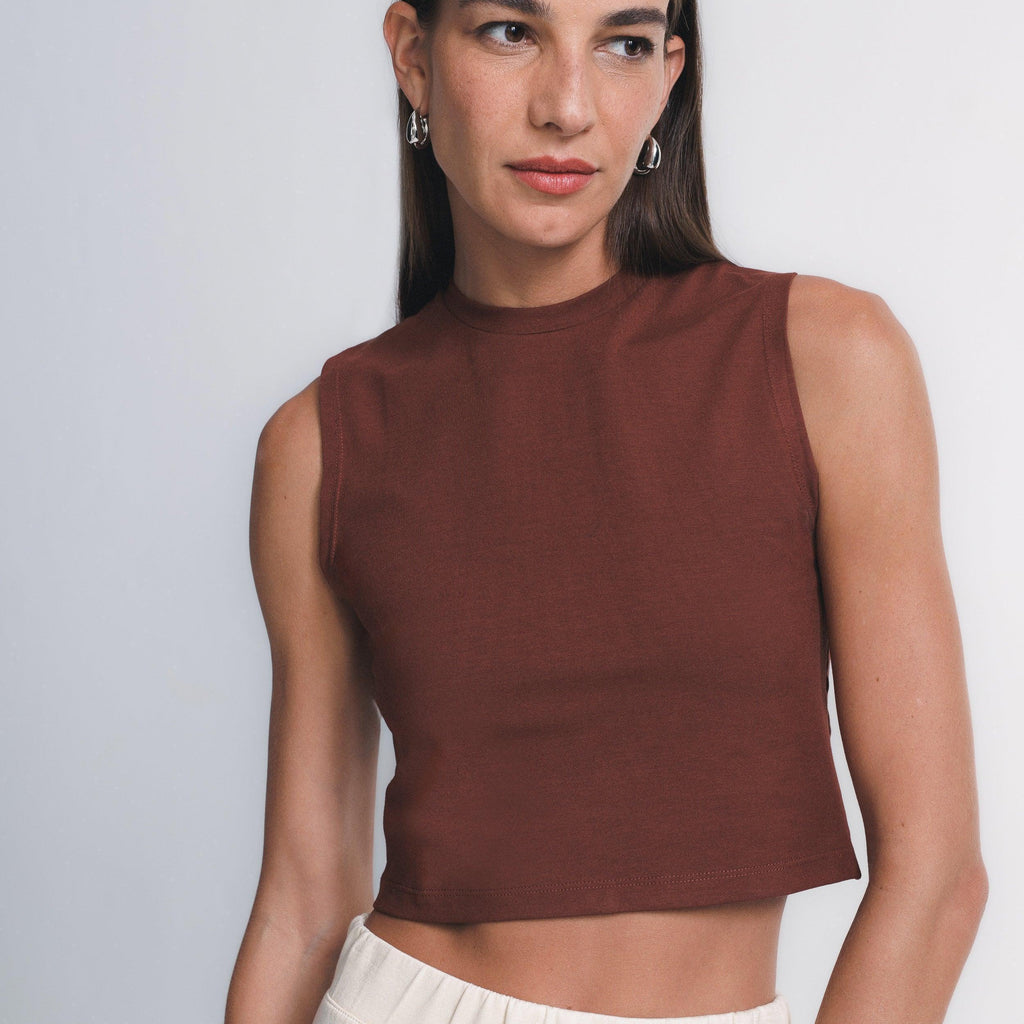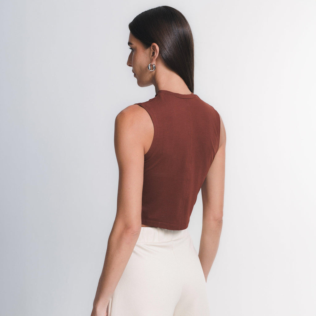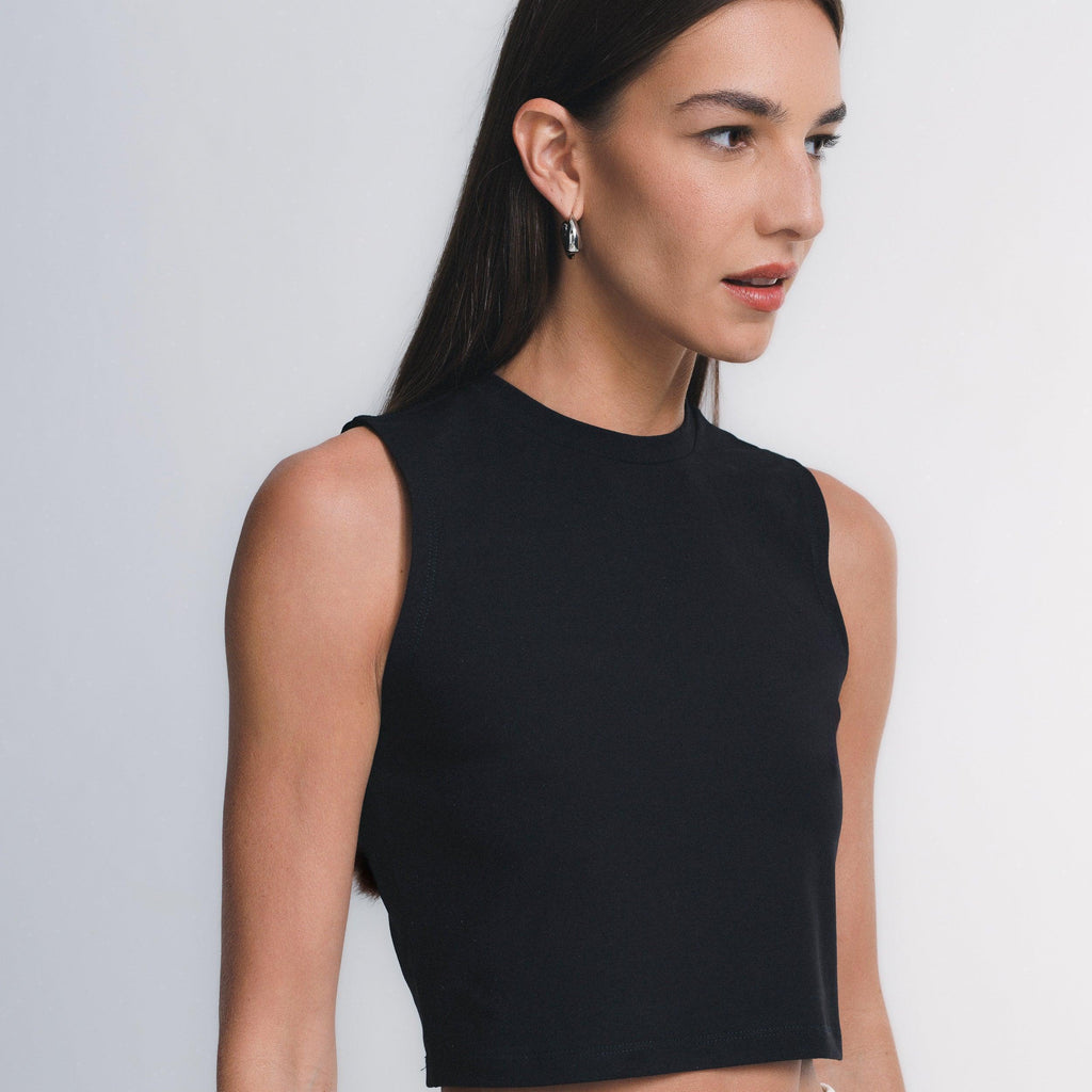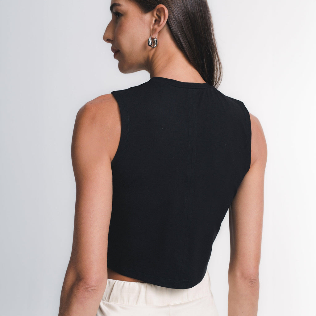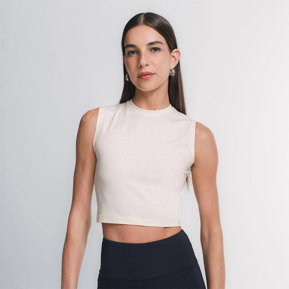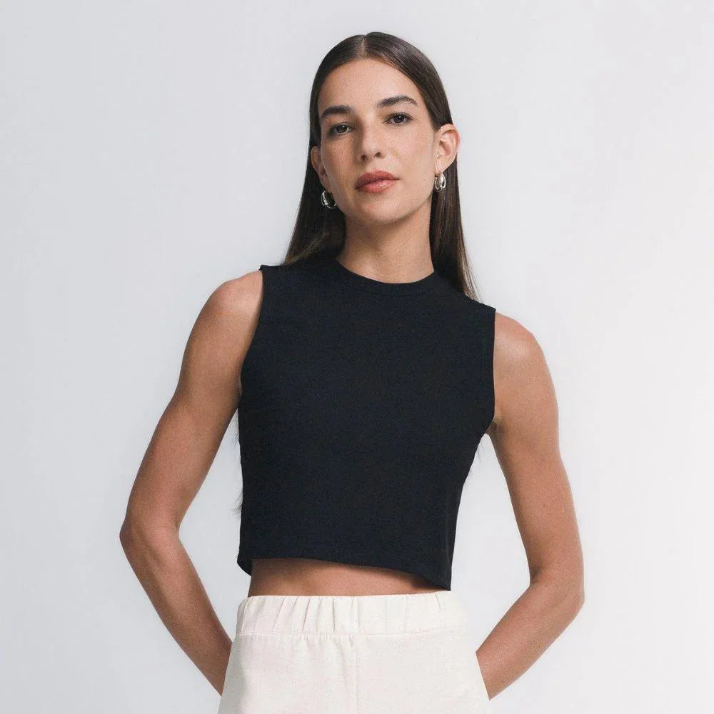 O caimento estruturado do tecido EVERSHAPE™faz desse cropped regata uma peça essencial que une conforto e estilo. Ideal como elemento principal ou para usar com sobreposições.