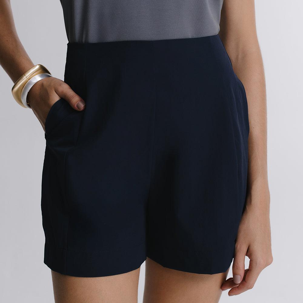 O Short Alfaiataria Tech Kyoto é uma das 2 novas adições à família Kyoto - alfaiataria tecnológica que une o minimalismo japonês ao design contemporâneo e recortes geométricos, para criar looks criativos e versáteis. Tem dois bolsos laterais, cintura alta, fecho em zíper nas costas, e todas as funcionalidades do tecido tecnológico FutureForm®: