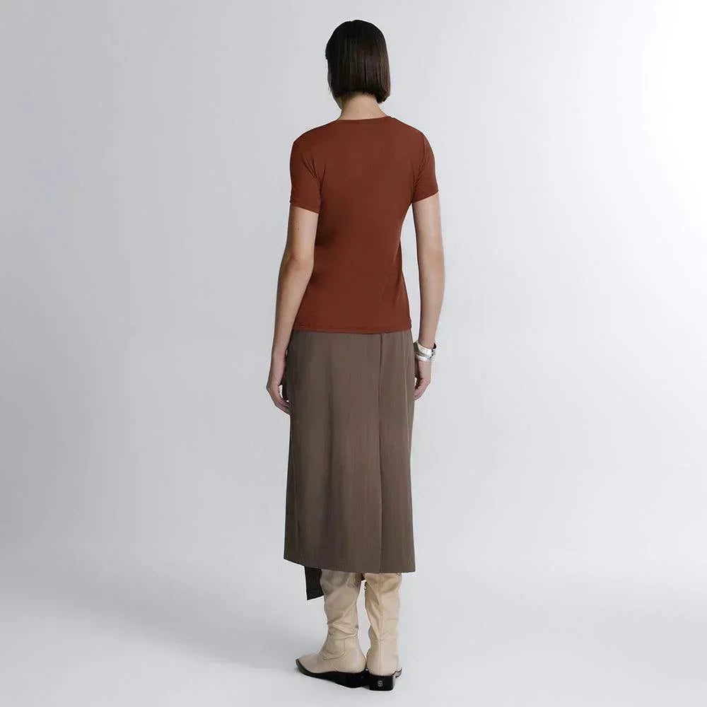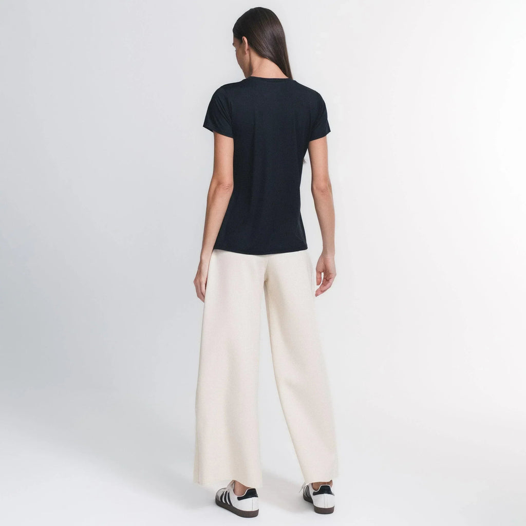 A primeira camiseta do Brasil feita com fibras tecnológicas, e a única com garantia contra desbotamento. O tecido INTECH™ facilita tudo: o trabalho, o treino, o cuidado e até a hora de se vestir. Como a camiseta premium feminina não pega cheiro fácil, requer menos lavagens. Como ela não desbota, requer menos compras. Como ela é minimalista e atemporal, entrega mais combinações com facilidade. Além disso, tem maciez superior ao algodão e emite até 81.5% menos gases estufa que o modal convencional.