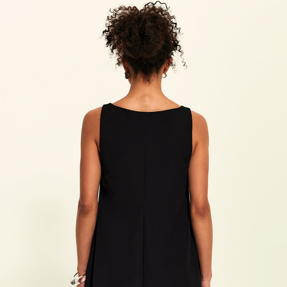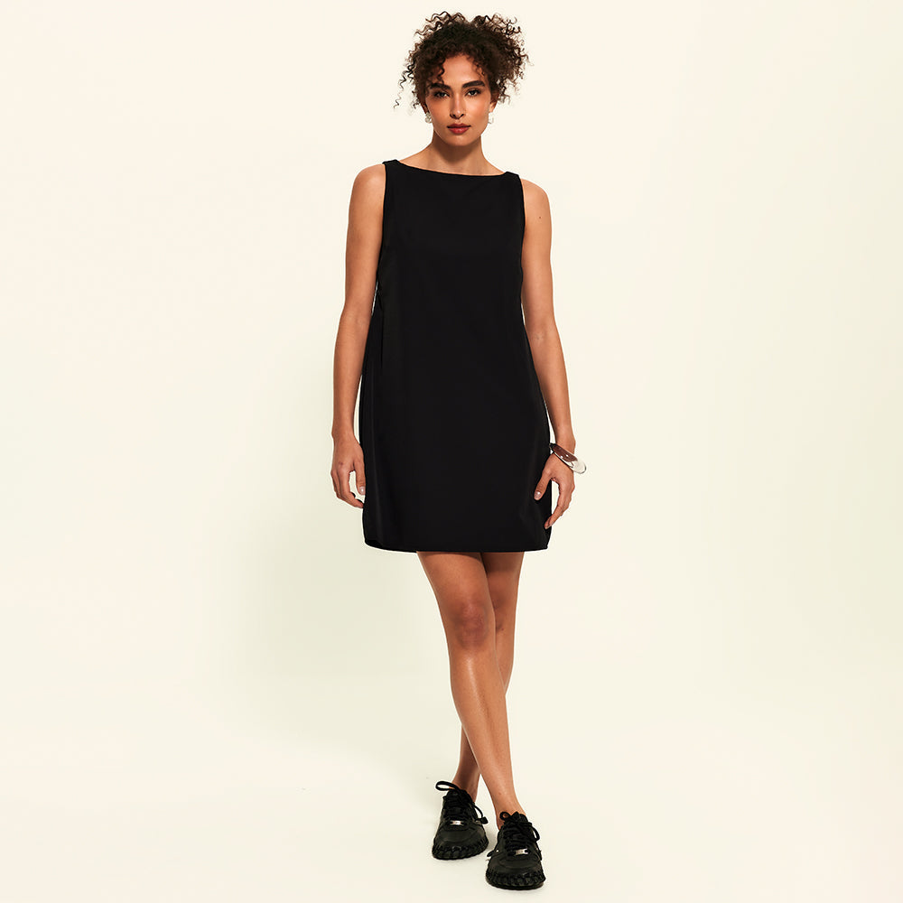 O aliado mais versátil da sua rotina: uma leitura contemporânea e tecnológica do vestido clássico e 2 em 1, que funciona também como túnica com sobreposição. A gola canoa traz sofisticação discreta, enquanto o shape curto e solto adiciona leveza e versatilidade ao look. Essencial, mas longe de ser básico, é feito com o tecido tecnológico FutureForm®: leve e acompanha seus movimentos sem limitar, mantendo o caimento e conforto impecáveis.