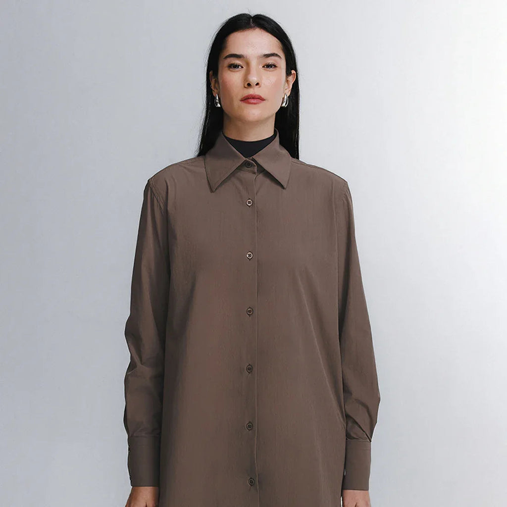 Camisa social tecnológica com acabamento resistente à água, projetada para unir sofisticação e praticidade no ritmo do workwear contemporâneo. A modelagem alongada e oversized garante conforto e um visual clean, perfeito tanto para ambientes formais quanto para combinações athleisure mais despojadas. Confeccionada em tecido FUTUREFORM®, oferece respirabilidade, elasticidade e secagem rápida, mantendo a peça sempre alinhada em qualquer ocasião.