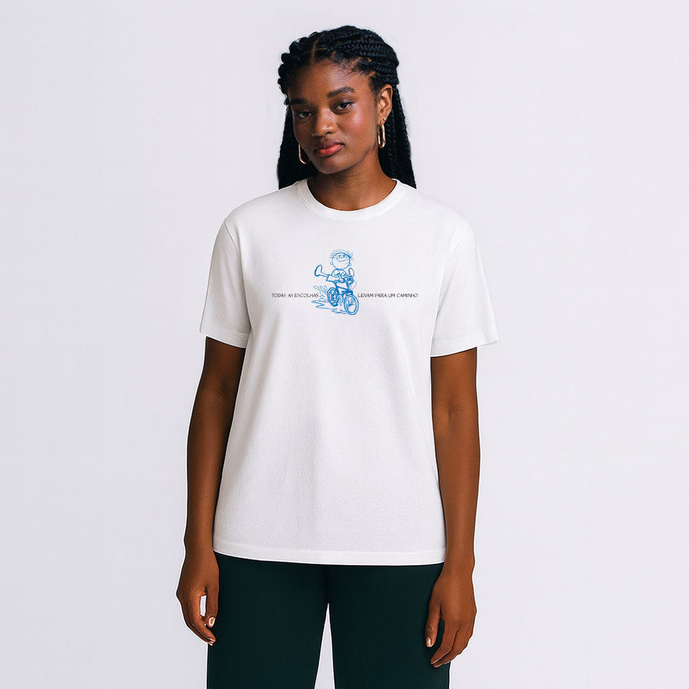 Camiseta para quem cria o amanhã. A camiseta básica e encorpada por ter gramatura superior às camisetas básicas tradicionais. Combina conforto, fluidez e maleabilidade, com mais estrutura e menos marcação do corpo.