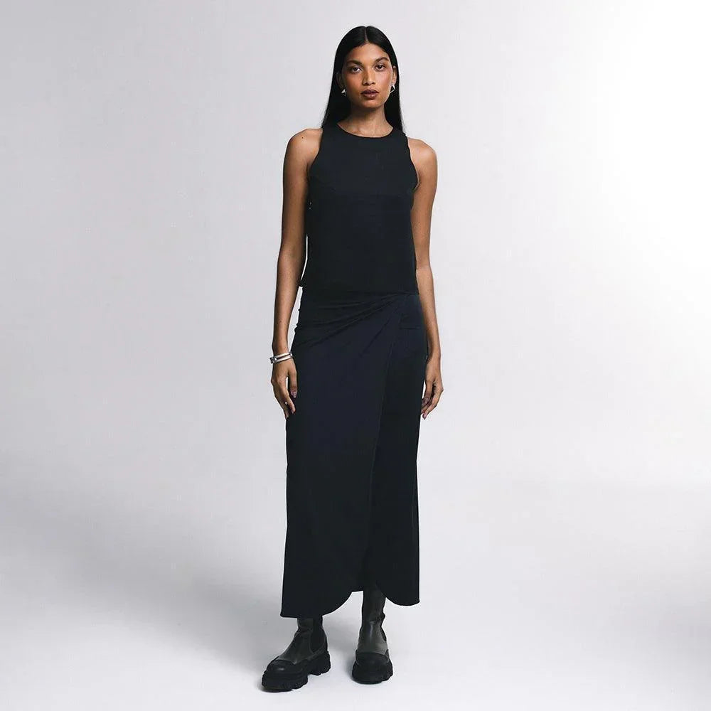 A Blusa Feminina Minimal Top é sem mangas e com decote arredondado mais próximo ao pescoço. Seu shape geométrico possui modelagem boxy, feito com tecido ULTRABOLD™️, tem comprimento entre camiseta regular e cropped.